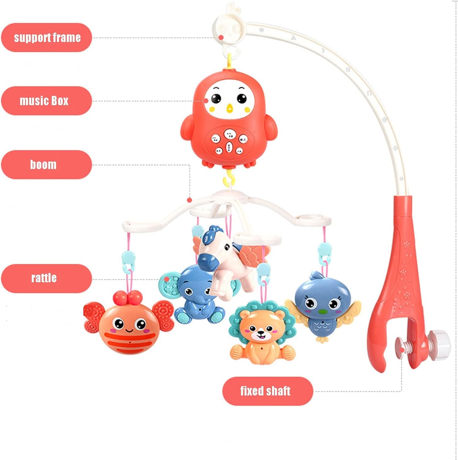 Soothe and entertain your little one with this multi-function baby crib mobile. Featuring gentle music, soft lights, and 360° rotating rattles, it creates a calming bedtime environment. The remote control allows parents to adjust music, lights, and timing with ease, making it convenient for nighttime use.