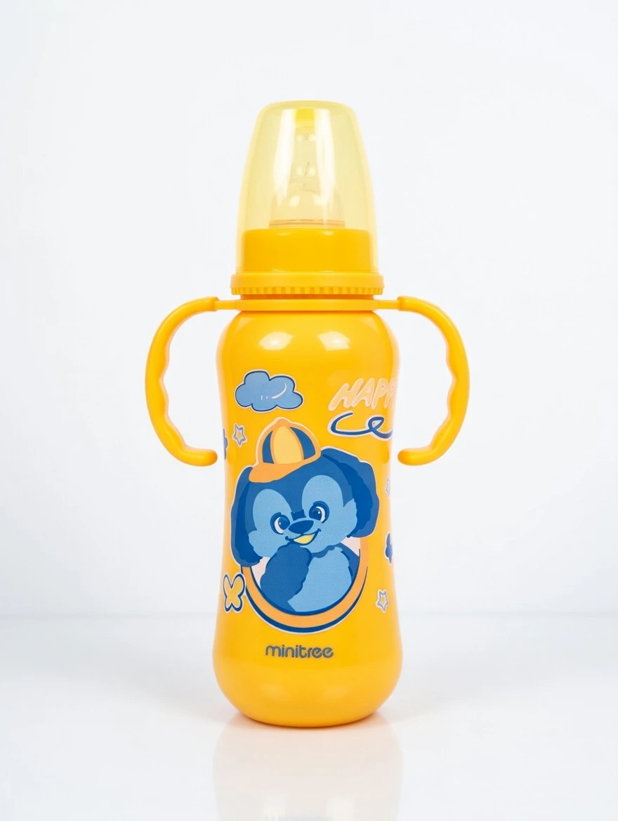Minitree Regular-Neck Feeding Bottle. Combining safety, durability, and a kid-friendly design, this 270ml bottle is perfect for babies transitioning to independent drinking. Made from high-quality, BPA-free materials, it provides a healthy and comfortable feeding experience for your growing little one.