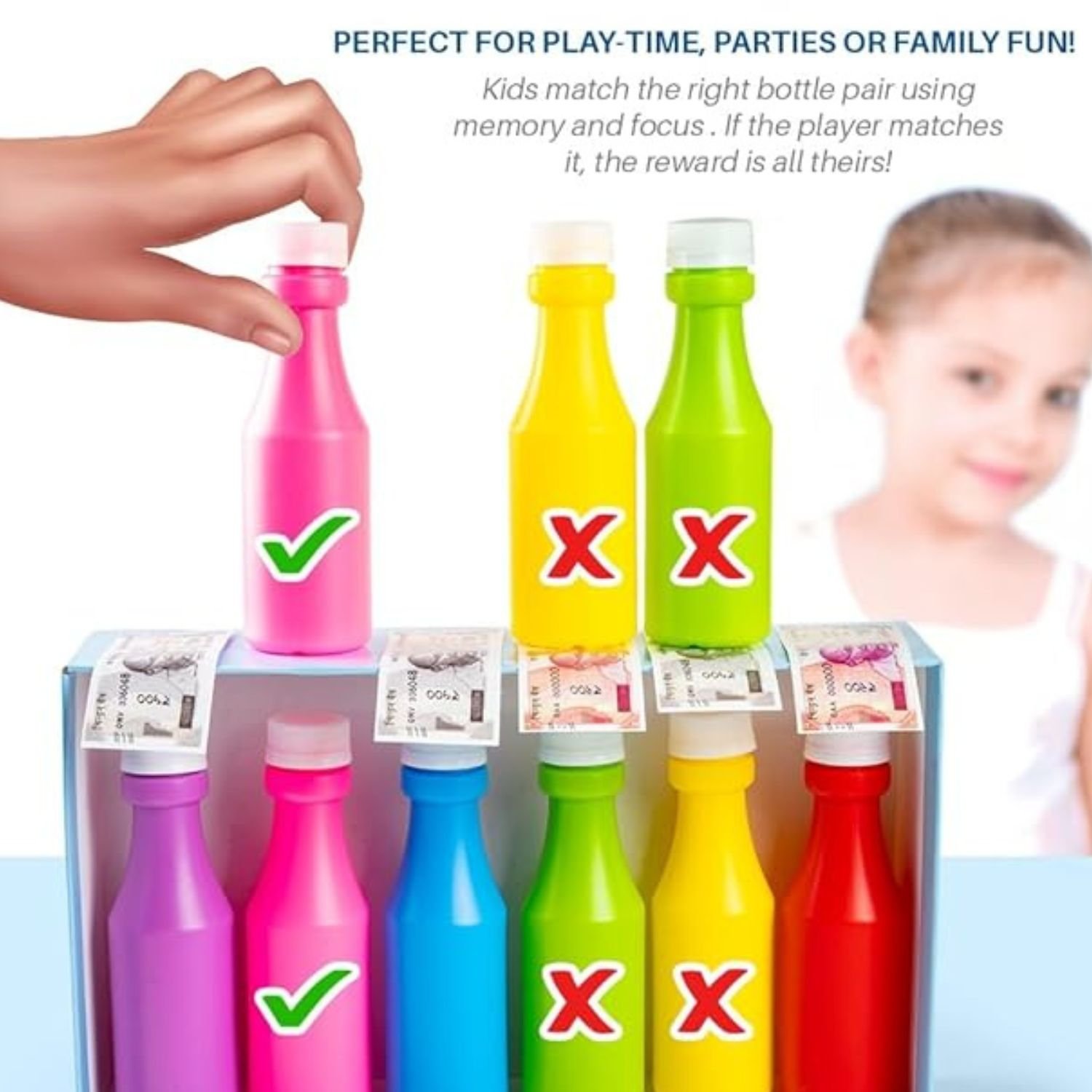 Bottle Bonanza Party/Picnic Family Game Colour Matching Fun Game for Kids & Adults – Includes 1 Box, 12 Bottles & 8 Toy Currency Notes