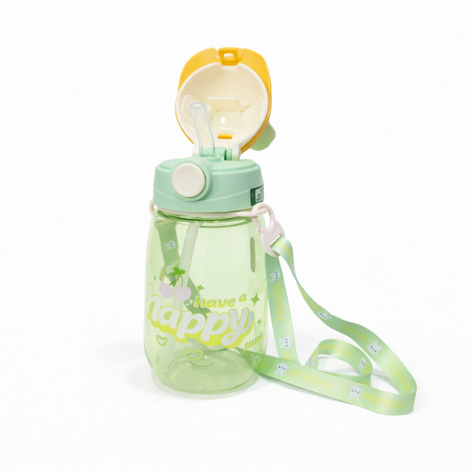 Bunny Straw Sipper Water Bottle with Strap – Cute Sipper Bottle for Boys & Girls | Flip-Top Drinking Bottle for School, Travel & Daily Use