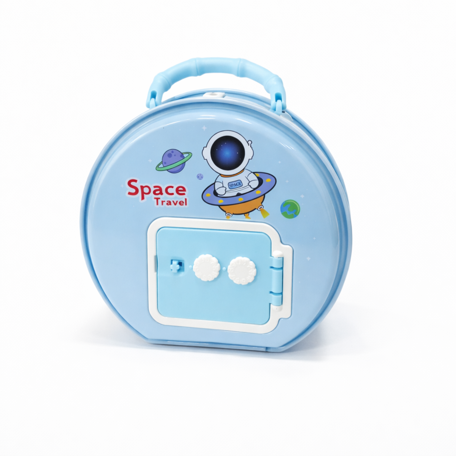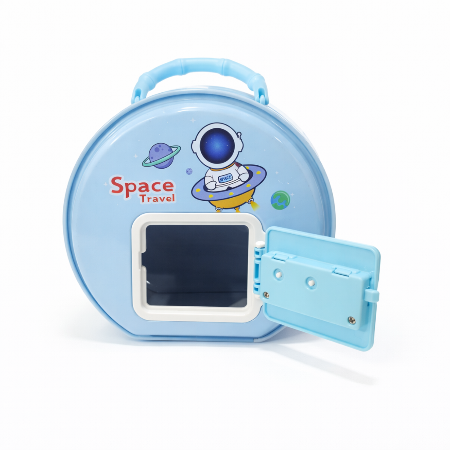 Make saving fun from an early age with this adorable astronaut-themed piggy bank. Designed for kids 3+ years, it features vibrant space prints, playful confetti details, and easy side handles for a comfortable grip.